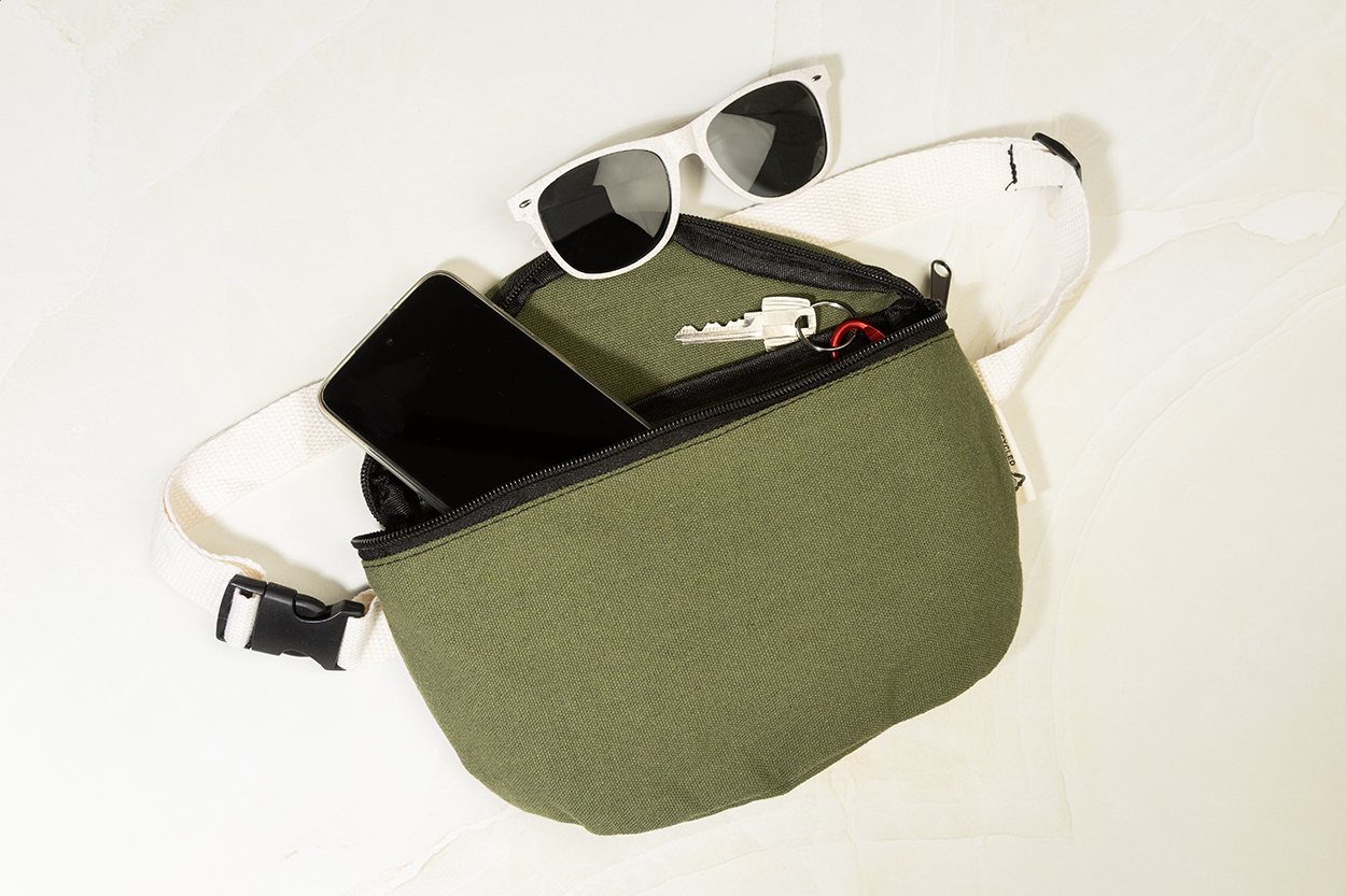 Ledvinka z recyklovaného plátna s přihrádkou na zip a nastavitelným popruhem. 70 % recyklované bavlny a 30 % recyklovaného polyesteru. S výraznou etiketou z recyklované bavlny.