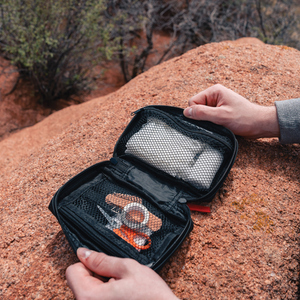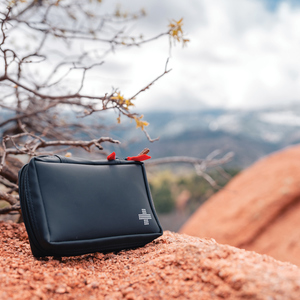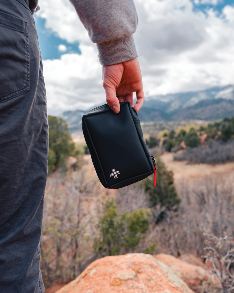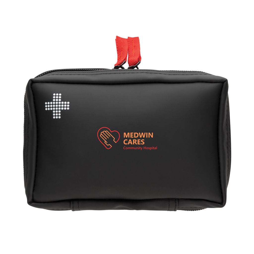 Luxusní lékárnička vyrobená z voděodolné nubukové PU kůže, která je zároveň stylová i praktická. Materiál lze snadno čistit. Obsah: 1ks PBT obvaz, 1ks PBT a kompresní obvaz, 1ks trojúhelníkový obvaz, 1ks sada pro dýchání z úst do úst, 1 pár rukavic, 1ks lepící páska, 3ks špendlíky, 1ks nůžky, 10ks náplastí a 4ks alkoholových polštářků. Obsah je v souladu se směrnicemi pro zdravotnické prostředky: 93/42/EHS a EU (2017/745), EN ISO 13485:2016. Veškerý obsah (kromě špendlíků a nůžek) je zabalený v papírovém sáčku označeném všemi povinnými informacemi, které vyžaduje legislativa EU (datum expirace, CE, číslo šarže). Celkový recyklovaný obsah: 46 % na základě celkové hmotnosti položky. Certifikace RCS zajišťuje kompletně certifikovaný dodavatelský řetězec recyklovaných materiálů.