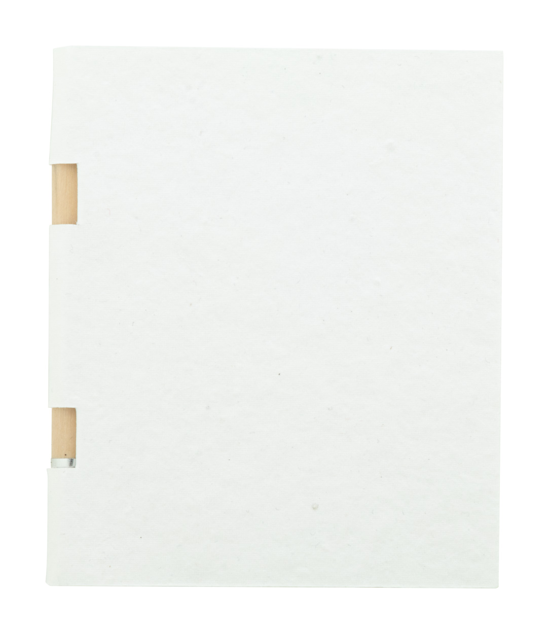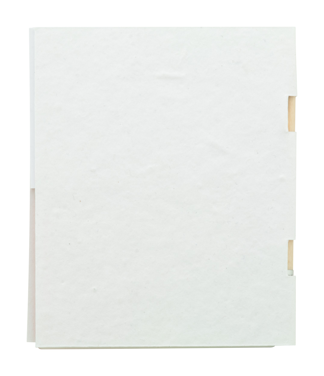Na zakázku vyrobený lepicí poznámkový blok pokrytý semenným papírem s různými semeny divokých květin s mini dřevěnou tužkou. Obsahuje samolepicí papírky z recyklovaného papíru ve 2 velikostech (50 listů 100×75 mm, 25 listů 50×75 mm) a 100 plastových fóliových značkovačů stránek v 5 různých barvách (12×44 mm). Cena zahrnuje celobarevně potištěný vnější obal, nezahrnuje tiskovou přípravu. Min. mn.: 100 ks.