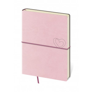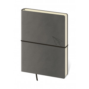 Moderní zápisník v měkké ohebné vazbě s kulatou příčnou gumičkou přes hřbet představuje nejnovější způsob zpracování. Zápisník je příjemný do ruky díky matné kožence a lehký díky měkkým deskám. Materiál desek se hodí na sleporažbu, která na kožence vynikne.