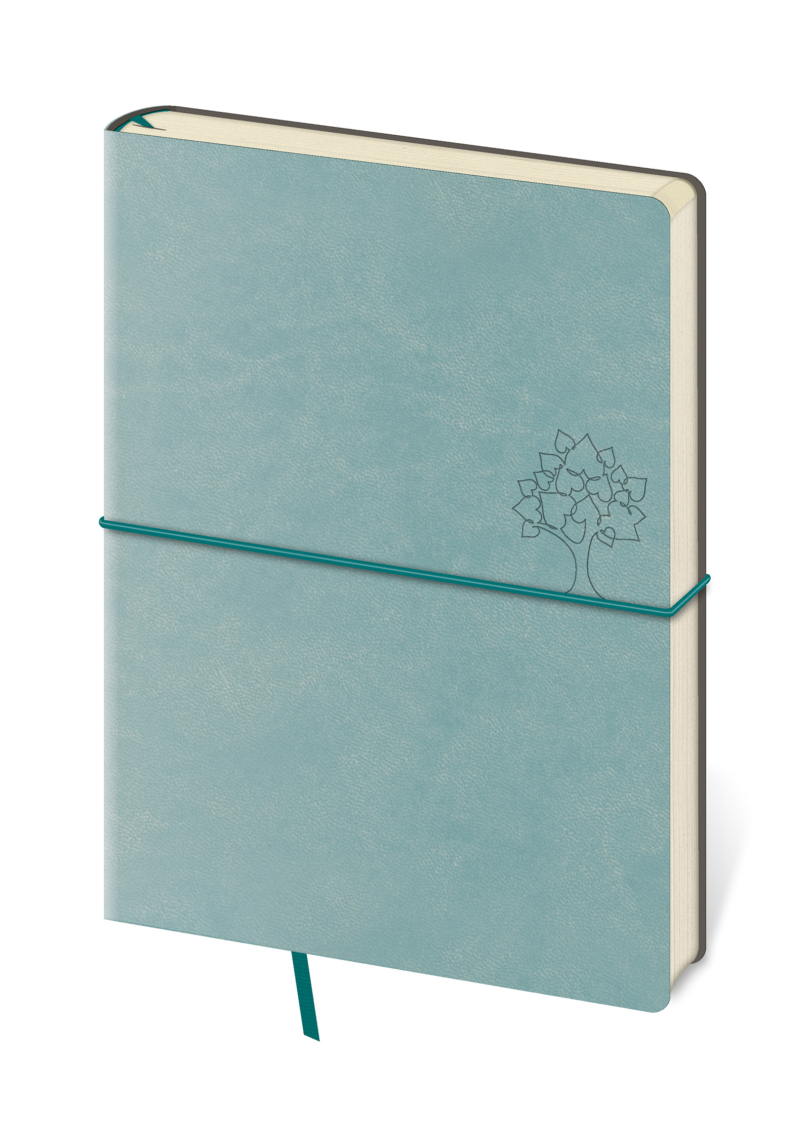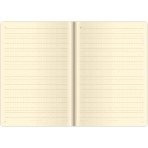 Moderní zápisník v měkké ohebné vazbě s kulatou příčnou gumičkou přes hřbet představuje nejnovější způsob zpracování. Zápisník je příjemný do ruky díky matné kožence a lehký díky měkkým deskám. Materiál desek se hodí na sleporažbu, která na kožence vynikne.