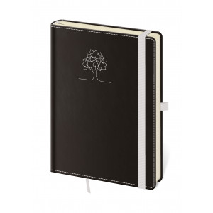 Desky jsou zhotoveny z matnéko materiálu na bázi zušlechtěného papíru , který je bez struktury a tim neruší vzhled samotného produktu . Zápisník je doplněn o praktickou gumičku pro uzavření a poutko na propisku . Do desek zle razit přes folii , případně potisknout sítotiskem. rozměr 14,3 x 20,5 cm .