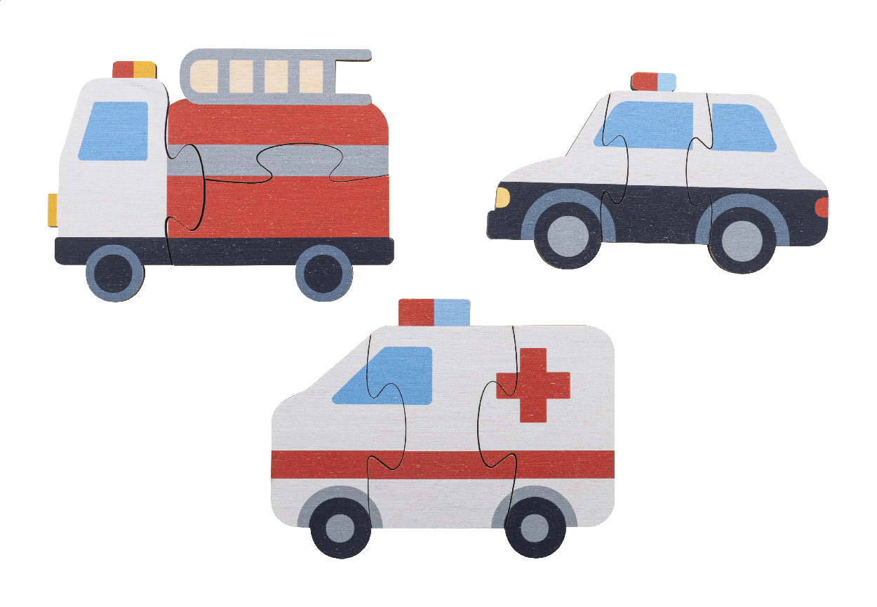 Dětská sada puzzle z březové překližky se 3 tematickými motivy. V bavlněném přepravním pytlíku.