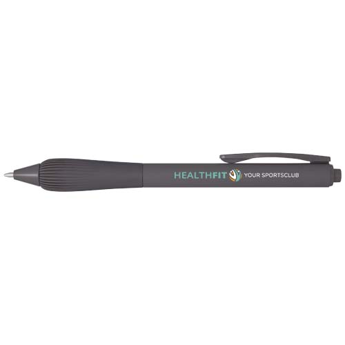 Kuličkové pero z recyklovaného plastu s pogumovaným tělem a rukojetí z TPR. Barva inkoustu: Černá. Délka psaní: 1000 metrů. Rozměr hrotu: 1,0 mm.
