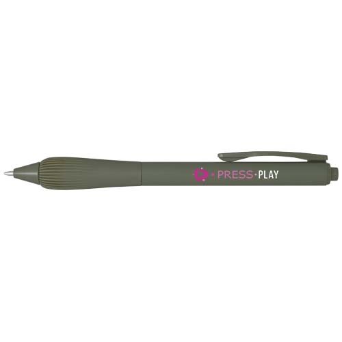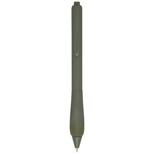 Kuličkové pero z recyklovaného plastu s pogumovaným tělem a rukojetí z TPR. Barva inkoustu: Modrá. Délka psaní: 1000 metrů. Rozměr hrotu: 1,0 mm.