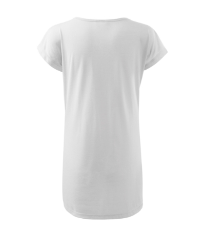 volný střih s bočními švy, délka pod úroveň boků, lodičkový výstřih, průkrčník lemován vrchovým materiálem, kimonové rukávy, doporučeno sušit ve vodorovné poloze