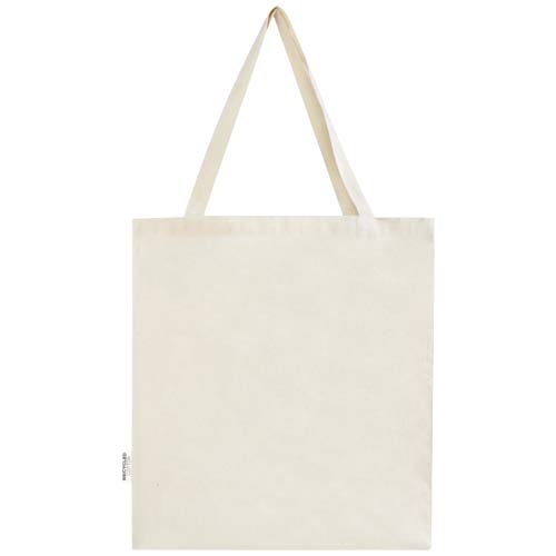 Nákupní taška Madras s klínkem, vyrobená ze 100% recyklované bavlny s certifikací GRS. Perfektní taška, kterou můžete vzít na jakoukoliv akci či konferenci nebo ji použít jako tašku na malý nákup. Díky hustotě bavlny 140 g/m² je taška pevná, má dlouhou životnost a je vhodná pro nošení těžkých předmětů v hlavní přihrádce. Díky 30cm uchům přes rameno se tato taška dobře nosí. Metody potištění, které jsou pro tuto nákupní tašku k dispozici, mají rovněž certifikaci, což zaručuje, že celý dodavatelský řetězec je transparentní a certifikovaný. Vyrobeno v Indii. Nosnost do 5 kg.