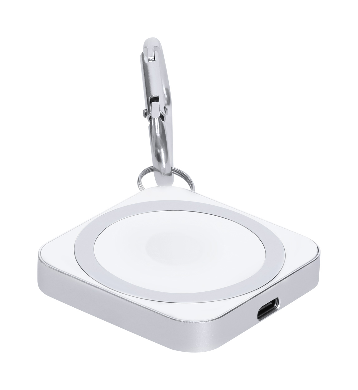 Magnetická bezdrátová rychlonabíječka (15W) v hliníkovém pouzdře s karabinou. Určeno pro nabíjení smartphonů, sluchátek a chytrých hodinek. Kompatibilní s iPhone® 12 nebo novějším.
