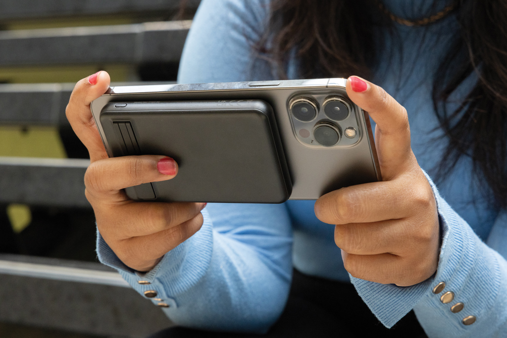 Kapesní powerbanka s kapacitou 5 000 mAh a 5W magnetickou bezdrátovou nabíječkou s pouzdrem vyrobeným z recyklovaného plastu ABS s certifikací RCS a bambusu s certifikací FSC. RCS je standard pro ověření recyklovaného obsahu výrobku v celém dodavatelském řetězci. Powerbanka obsahuje lithium-polymerovou baterii třídy A s dlouhou výdrží 5 000 mAh. S integrovaným stojánkem na telefon. Vstup typu C 5V/2,4A; výstup typu C: 5V/2A.4A. Položka a příslušenství neobsahují PVC. Včetně recyklovaného nabíjecího kabelu TPE s certifikací RCS. Baleno ve směsném obalu FSC®.