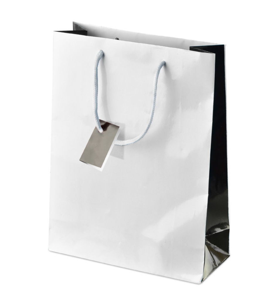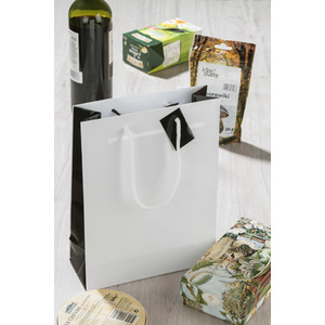 Univerzální papírová taška na balení dárků s černými stranami bude dokonalým přídavkem nejen k vánočním dárkům. Šňůrkové uchycení s lístkem na napsání přání nebo tisk loga. Tloušťka papíru 157 gsm.