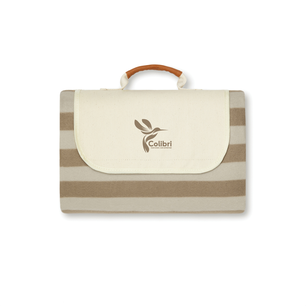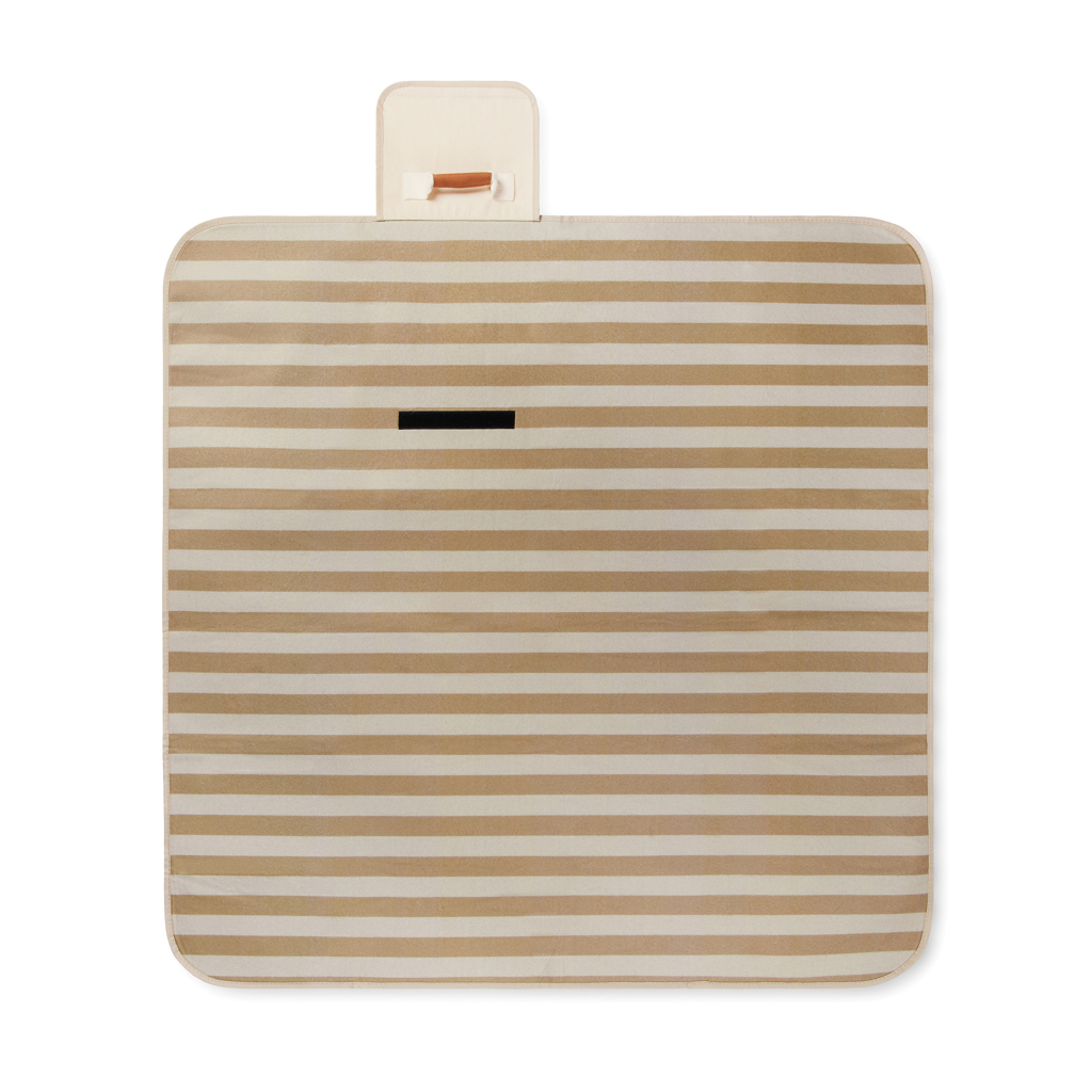 Pikniková deka z měkkého fleecu s detaily z bavlněného canvas a umělé kůže. Fleece je vyroben ze 100 % GRS certifikovaného RPET. GRS (Global Recycle Standard) je globální standard, který umožňuje ověřit použití recyklovaného materiálu v produktu napříč celým dodavatelským řetězcem. Celkový podíl recyklátu dle váhy produktu: 51 %. Spodní část vyrobena z vodu odpuzujícího materiálu PEVA. Chytrá konstrukce pro snadné složení.