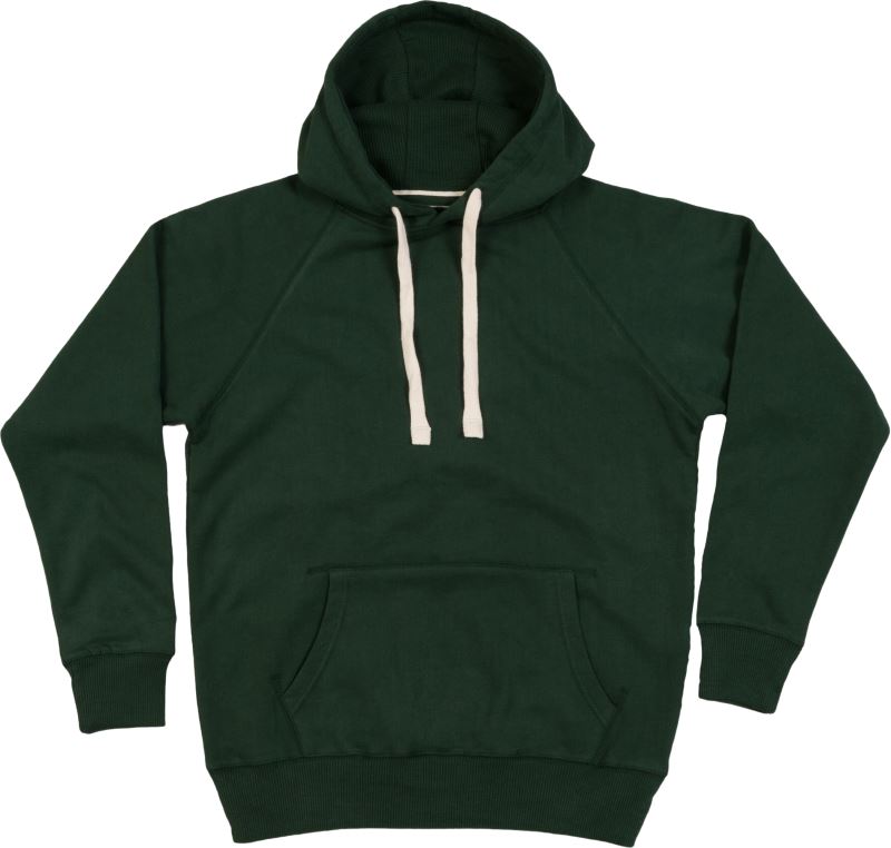 330g/m², 80% certifikovaná bio bavlna, 20% polyester, organická bavlna nebo v přeměně na organickou (IC 2), broušený povrch (tzv. broskvová slupka)