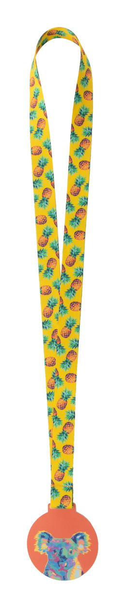 Zakázková akrylová medaile s plnobarevnou grafikou. Na sublimačním potištěném RPET lanyardu. Cena zahrnuje sublimaci a UV LED tisk, nezahrnuje tiskové přípravy. Min. mn.: 100 ks.