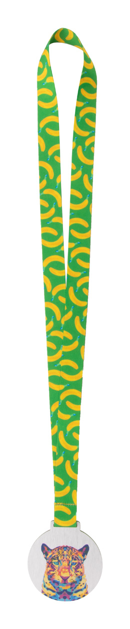 Na zakázku vyrobená medaile z broušeného hliníku s plnobarevnou grafikou. Na sublimačním potištěném RPET lanyardu. Cena zahrnuje sublimaci a UV LED tisk, nezahrnuje tiskovou přípravu. Min. mn.: 100 ks.