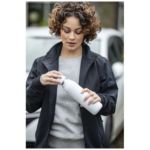 Lahev Marka má vakuovou konstrukci z nerezové oceli s měděnou izolací, která udrží nápoje horké nebo studené po několik hodin. Izolovaná konstrukce z nerezové oceli 18/8 zabraňuje kondenzaci na vnější straně lahve a díky trendy povrchové úpravě ve formě práškového nástřiku je extra odolná. Nabízí také šroubovací víko odolné proti rozlití a odolné poutko na ruku ze slitiny zinku. Bez BPA, testováno a schváleno podle německé legislativy o bezpečnosti potravin (LFGB). Testováno a schváleno na obsah ftalátů podle předpisů REACH. Hodí se pro většinu standardních auto držáků. Objem je 600 ml. Nedoporučuje se mýt v myčce. Dodává se v dárkové krabičce z recyklované lepenky.
