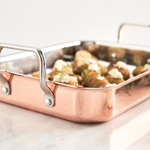 Exkluzivní třívrstvý měděný pekáč. Vnější měděná vrstva, prostřední hliníková vrstva, vnitřní vrstva z nerezavějící oceli pro snadné mytí. Měď a hliník zajišťují rychlé zahřátí a rovnoměrnou distribuci tepla.