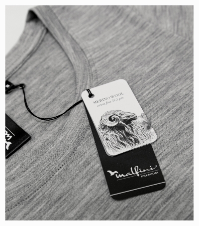 extra jemná merino vlna, nemačkavý a vysoce prodyšný materiál, termoregulační a antibakteriální vlastnosti, schopnost odvodu vlhkosti a absorpce zápachu, přiléhavý střih s bočními švy, hlubší kulatý výstřih, úzký lem průkrčníku z vrchového materiálu, vnitřní část průkrčníku začištěna páskou z vrchového materiálu, zpevnění ramenních švů páskou, dlouhé rukávy s manžetou, doporučeno sušit ve vodorovné poloze