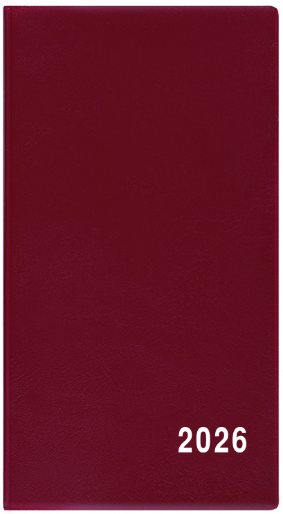Jednoduchý a praktický měsíční diář vyrobený z jemného hladkého materiálu s polomatným povrchem v barvě bordó. Ideální pro každého, kdo si oblíbil měkkou šitou vazbu.