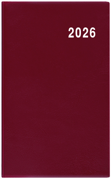 Jednoduchý a praktický měsíční diář vyrobený z jemného hladkého materiálu s polomatným povrchem v barvě bordó. Ideální pro každého, kdo si oblíbil měkkou šitou vazbu.