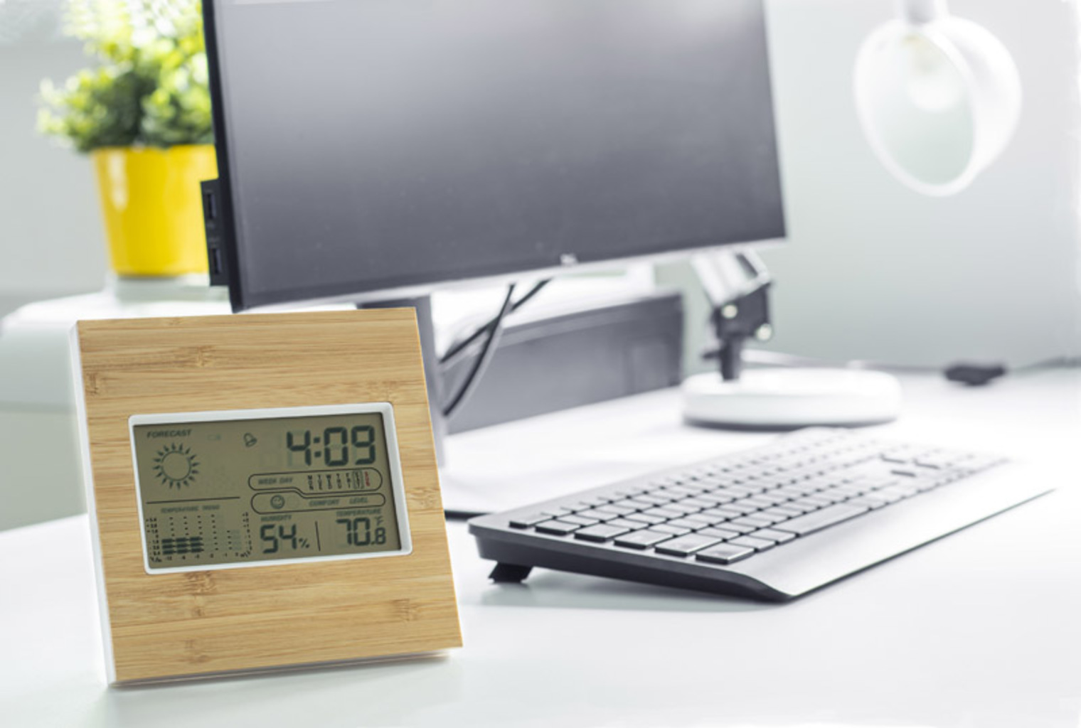 JUPITER je meteorologická stanice s možností měření teploty uvnitř místnosti. Má následující funkce: čas, datum, den v týdnu, vnitřní teplotu, vlhkost vzduchu, úroveň pohodlí, vizualizaci počasí a budík. Přední část pouzdra je pokryta bambusovou vrstvou, která dokonale ladí s minimalistickým designem interiéru.
