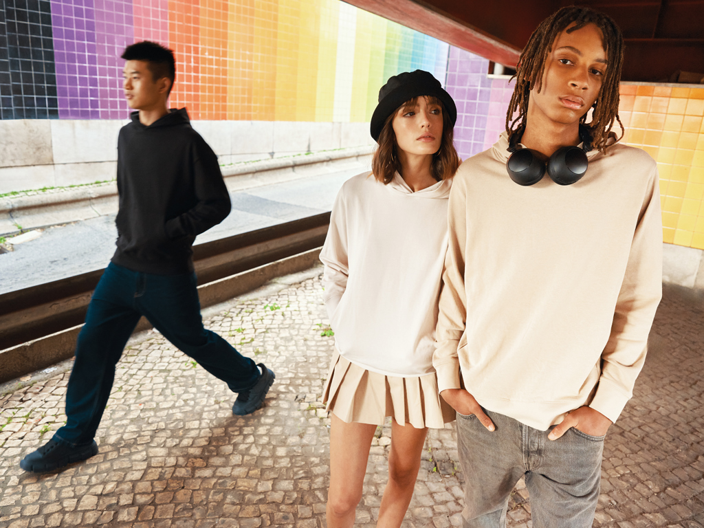 peach nectar, 30 % recyklované a 70 % organické bavlny