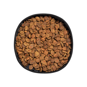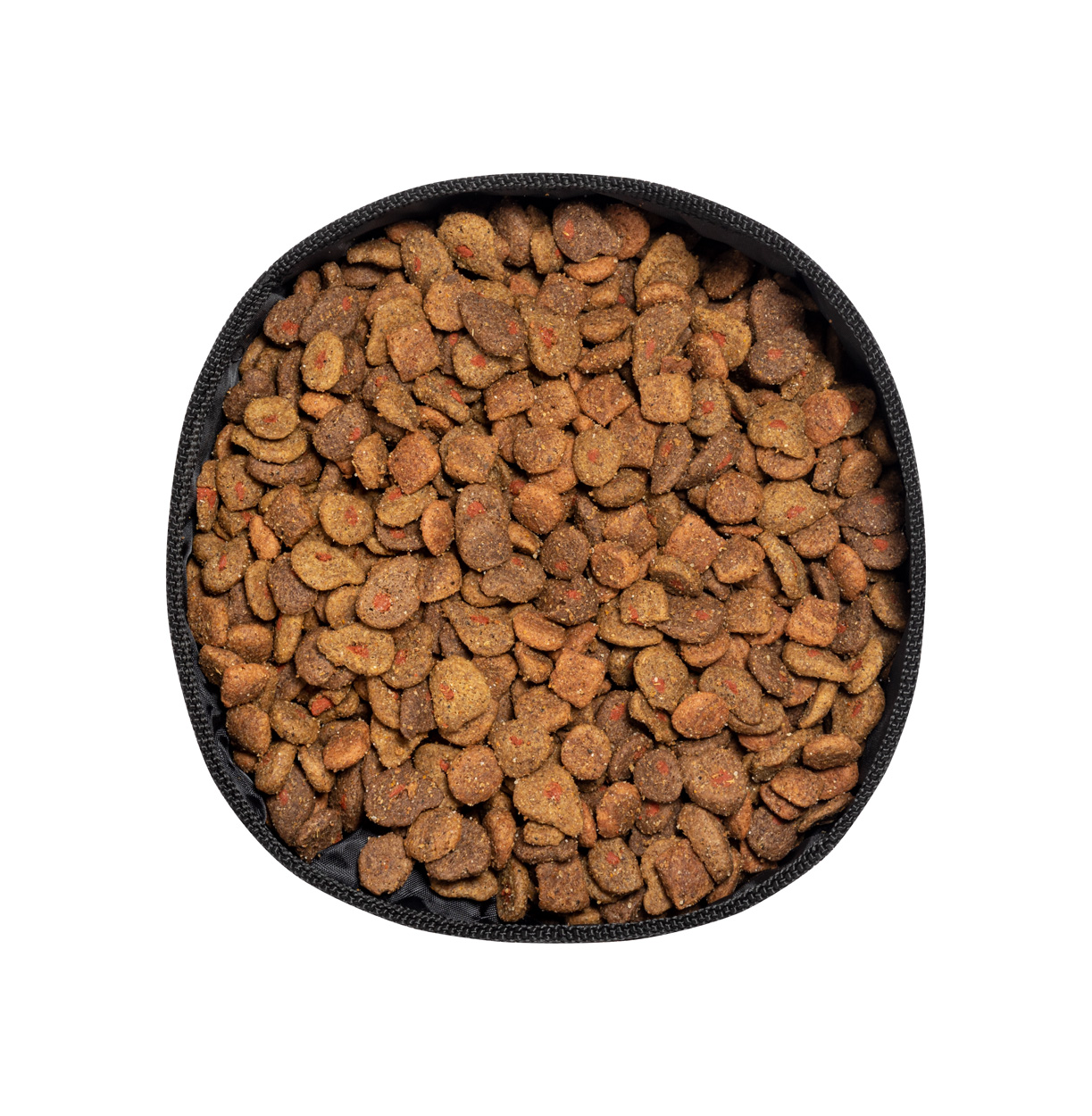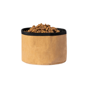 Skládací miska pro psy z laminovaného recyklovaného papíru a RPET polyesteru.