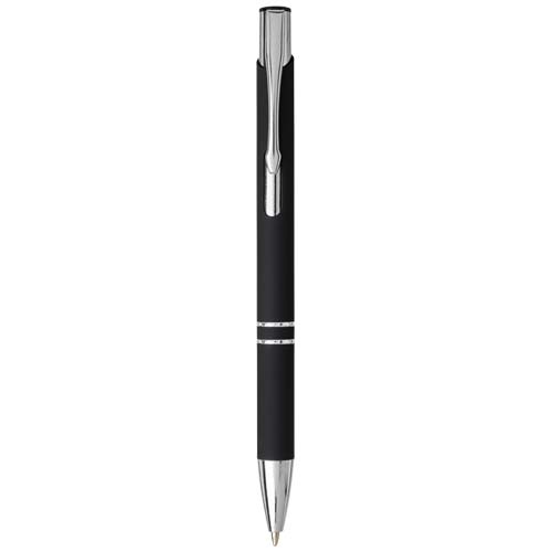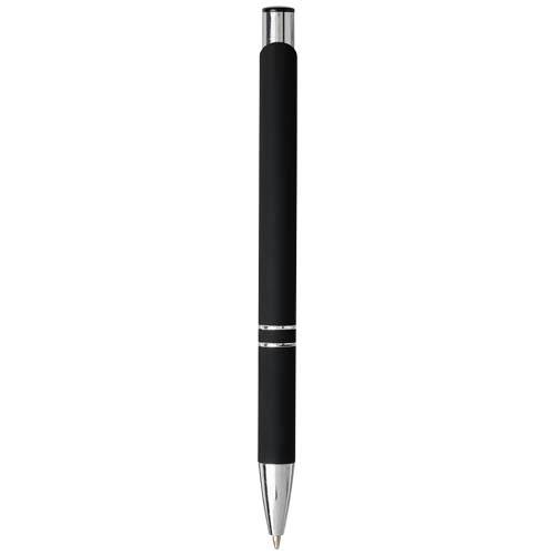 Díky pogumovanému povrchu má pero měkký úchop a laserové rytí odhalí stříbrnou spodní vrstvu. Kuličkové pero se stiskacím mechanismem, povrchem potaženým černou pryží, detaily z chromu a horní částí z černého ABS plastu. Široká a oblíbená řada Moneta je dostupná v různých stylech a provedeních.