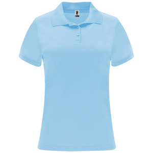 Dámské sportovní polokošiles krátkým rukávem. Úpletový límec s légou na tři knoflíky. Přiléhavý střih. Prodyšná, snadno pratelná a suchá tkanina. Odnímatelná etiketa. Technická tkanina. Prodyšná tkanina. Modelka měří 173 cm a má na sobě velikost S.