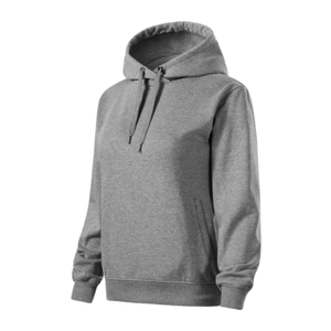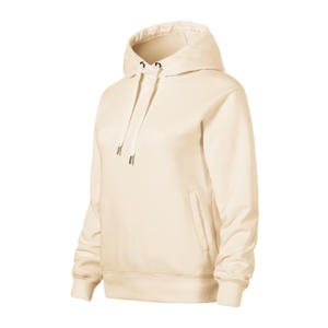 bez etikety - připraveno na rebranding, volný střih s bočními švy, kapuce s podšívkou, na stažení šňůrkou, neutrální velikostní štítek v boční části průkrčníku, vnitřní část průkrčníku začištěna páskou v barvě vrchového materiálu, nízkohlavicové rukávy, lištové kapsy ve stylu klokanky, dolní lem a manžety rukávů z žebrového úpletu 2:2 s 5 % elastanu, vnitřní strana počesaná