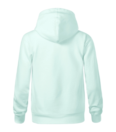bez etikety - připraveno na rebranding, volný střih s bočními švy, kapuce s podšívkou, na stažení šňůrkou, neutrální velikostní štítek v boční části průkrčníku, vnitřní část průkrčníku začištěna páskou v barvě vrchového materiálu, nízkohlavicové rukávy, lištové kapsy ve stylu klokanky, dolní lem a manžety rukávů z žebrového úpletu 2:2 s 5 % elastanu, vnitřní strana počesaná