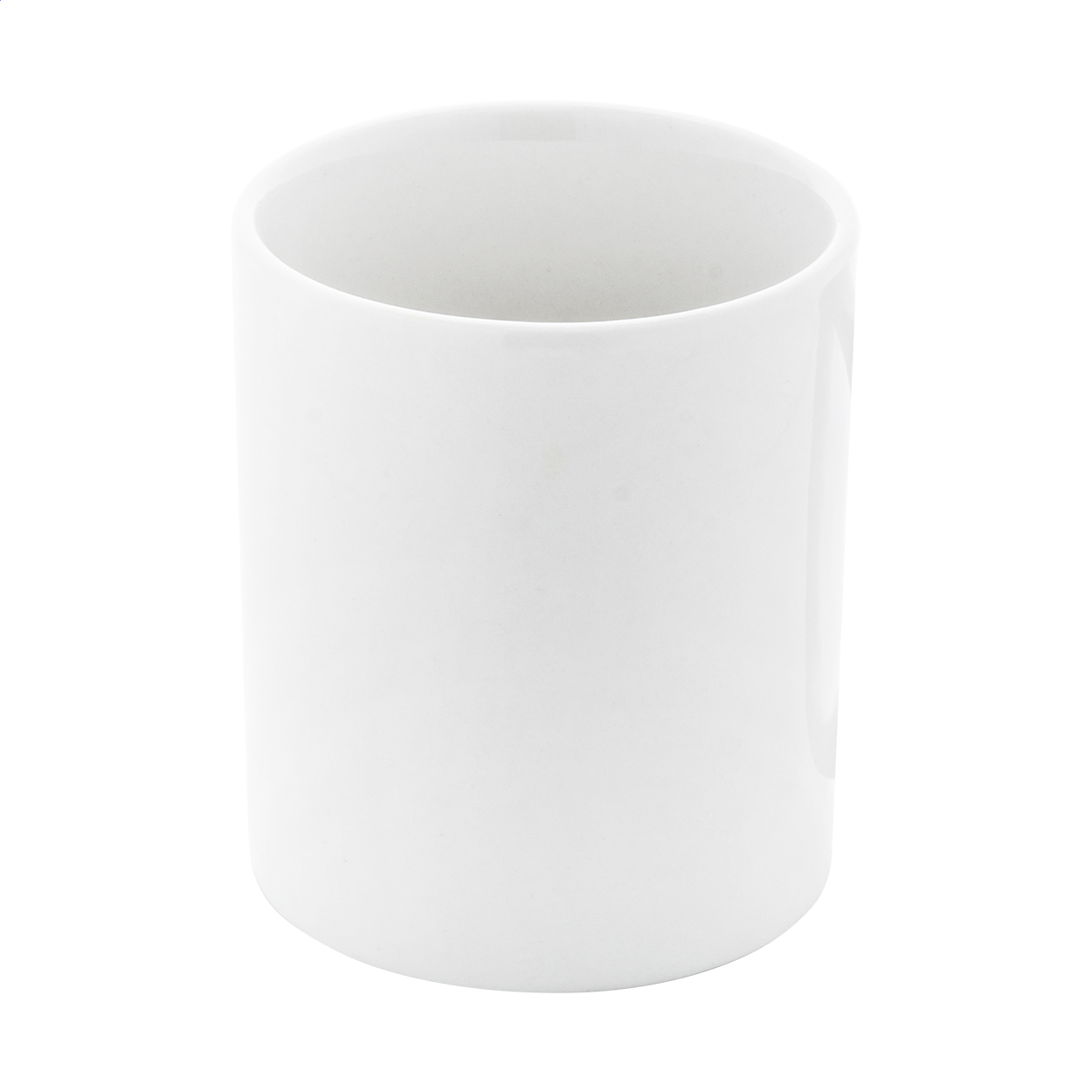 Bílý keramický hrnek pro sublimační potisk vhodný do myčky na nádobí, 300 ml. V bílé papírové krabici.