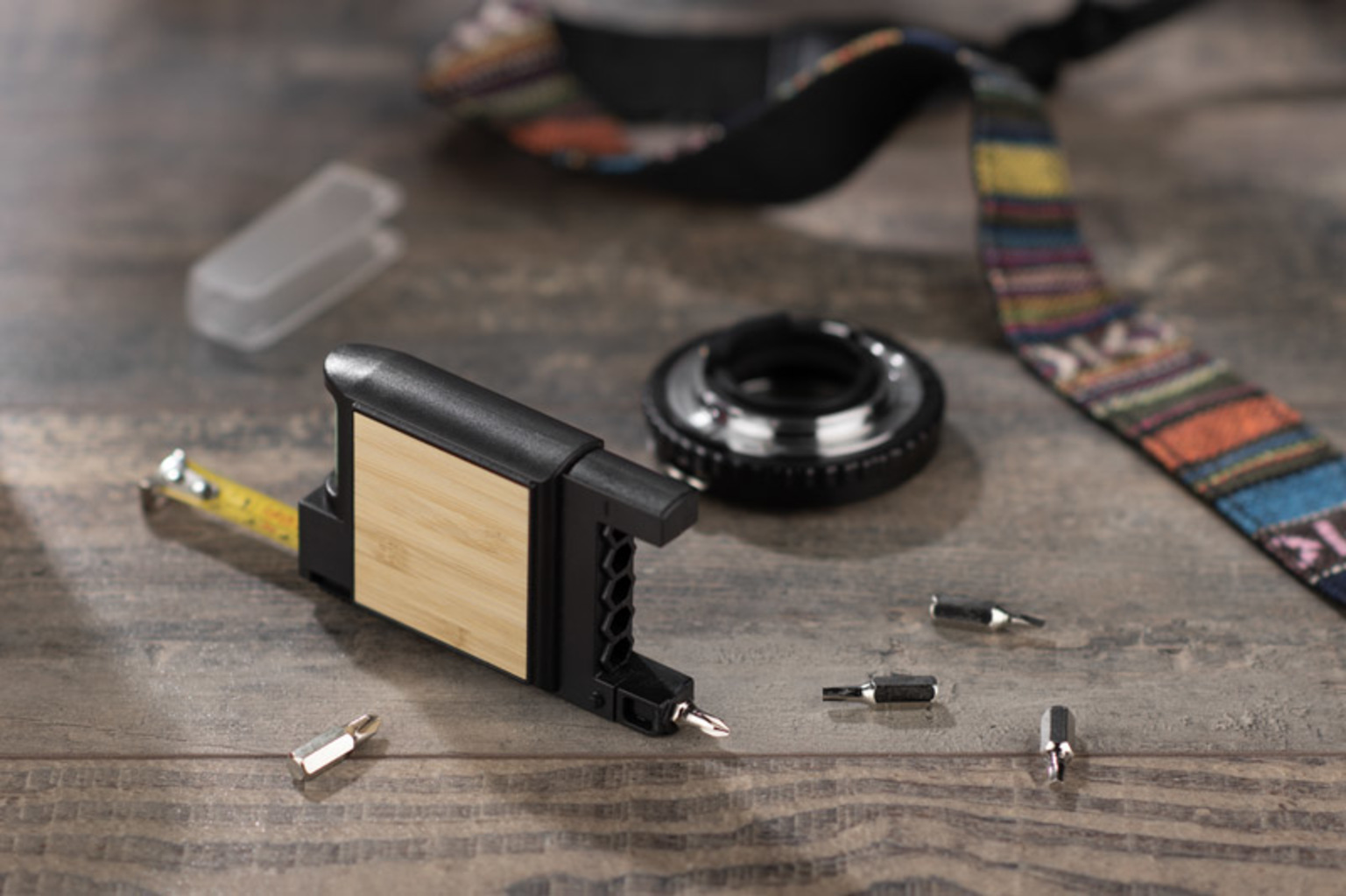 Multifunkční nástroj ALGO je vybaven 3metrovým měřicím pásem, vodováhou a vestavěným šroubovákem s vyměnitelnými bity. Umožňuje měření, montáž a vyrovnávání.