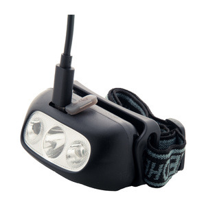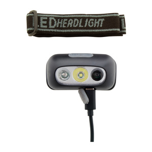 Plastová čelovka s vestavěnou USB dobíjecí baterií (400 mAh) a nastavitelným popruhem. S vysoce výkonným COB světlem a dvěma snímači pohybu. S vysokým, nízkým a světelným režimem citlivým na pohyb. Včetně USB nabíjecího kabelu.