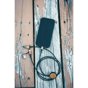 Nabíjecí kabel 6 v 1 s praktickou délkou 120 cm. Disponuje 5 konektory: USB C/USB A vstup; USB C/micro USB/iOS výstup. USB C je vhodné pro nabíjení moderních telefonů, ale i MacBooků. USB A má dvojí funkci (vstup i výstup) pro nabíjení jakéhokoliv zařízení z jakéhokoliv jiného zdroje. Pouzdro a konektory jsou vyrobené z FSC® třešňového dřeva, kabely z RCS recyklovaného polyesteru (vnější část) a RCS recyklovaného TPE (vnitřní část). Podíl použitého recyklovaného materiálu vzhledem k celkové váze produktu: 46 %. Výrobek je kompletně bez PVC. Baleno v FSC® kraftovém obálkovém balení. Vhodné pro nabíjení i přenos dat. Max 5V/2A.