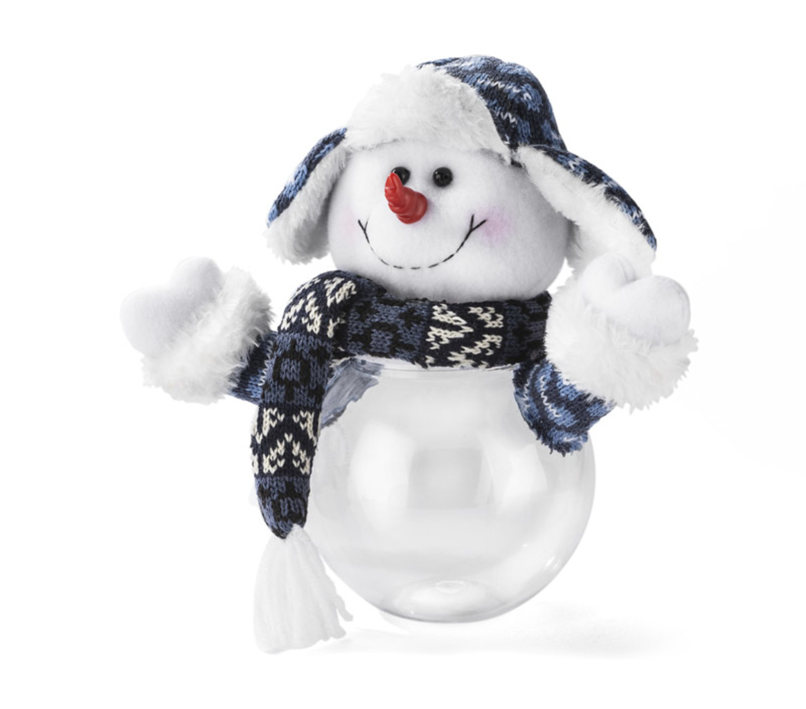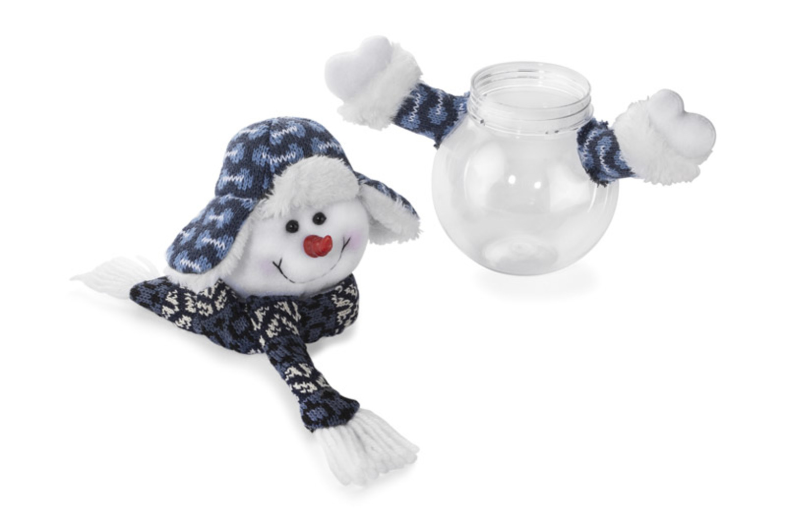 Kontejner ve tvaru sněhuláka je dokonalým doplňkem pro vánoční čas. Krásný vánoční dárek, do kterého si můžete dát ozdoby a zabalené sladkosti. Kontejner je k dispozici ve dvou barvách. Je zcela vyroben z plastu a část se sněhulákem je vyrobena z látky. Výrobek není určen pro přímý kontakt s potravinami.