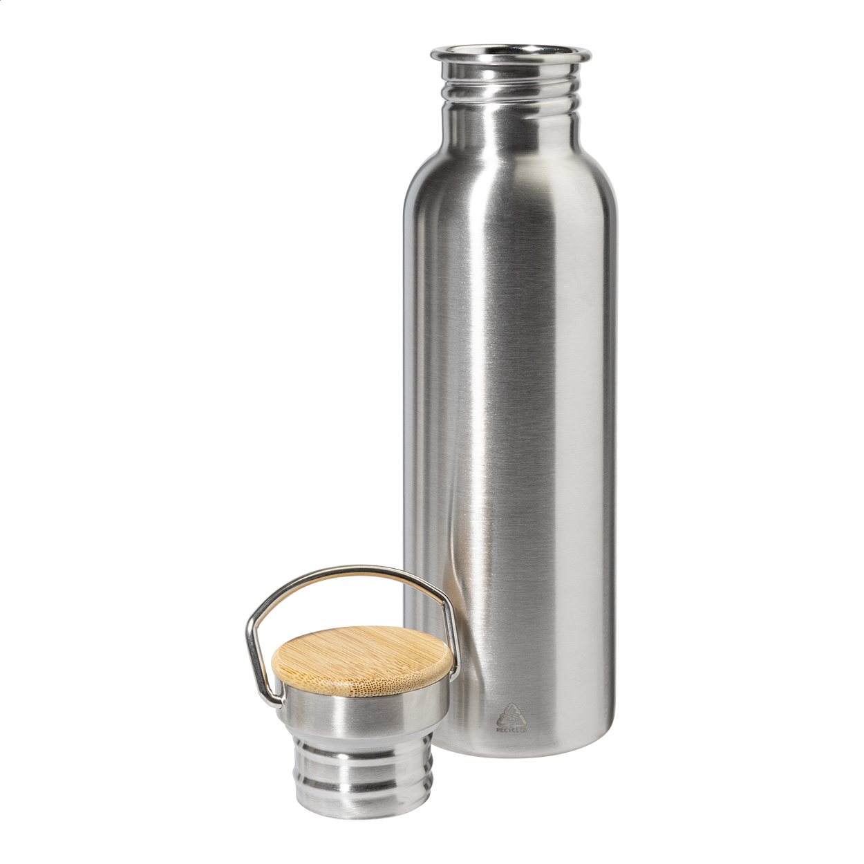 Láhev z recyklované nerezové oceli s bambusovým víčkem, 750 ml.