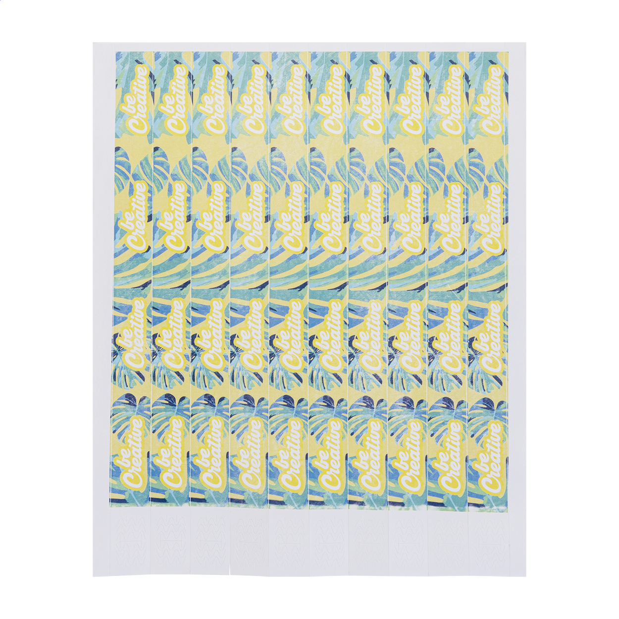 Jeden list 19 mm širokých tyvekových náramků s barevným potiskem (10 ks) s lepicím bezpečnostním uzávěrem a jedinečným číslováním. Cena zahrnuje digitální potisk na přední straně, nezahrnuje tiskovou přípravu. Min. mn.: 50 ks (500 náramků).