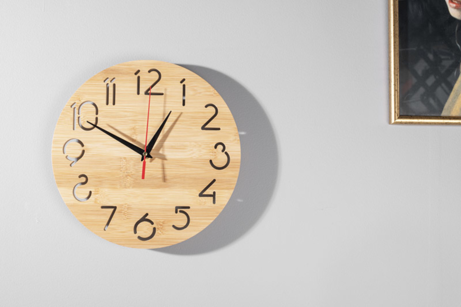 Nástěnné hodiny TOKKI přirozeně kombinují funkčnost a estetiku. Jsou vyrobeny z bambusu a vynikají moderním designem, zatímco průhledné číslice jim dodávají lehkost a jemnost. Klasické ručičky zajišťují pohodlné a čitelné odečítání času a díky tichému mechanismu se hodiny skvěle hodí do domácnosti, kanceláře nebo kavárny. Montáž je jednoduchá a hodiny jsou napájeny jednou baterií AA (není součástí dodávky). Hodiny TOKKI jsou také zajímavou variantou reklamního gadgetu - díky možnosti označení logem se z nich stane stylový reklamní předmět.