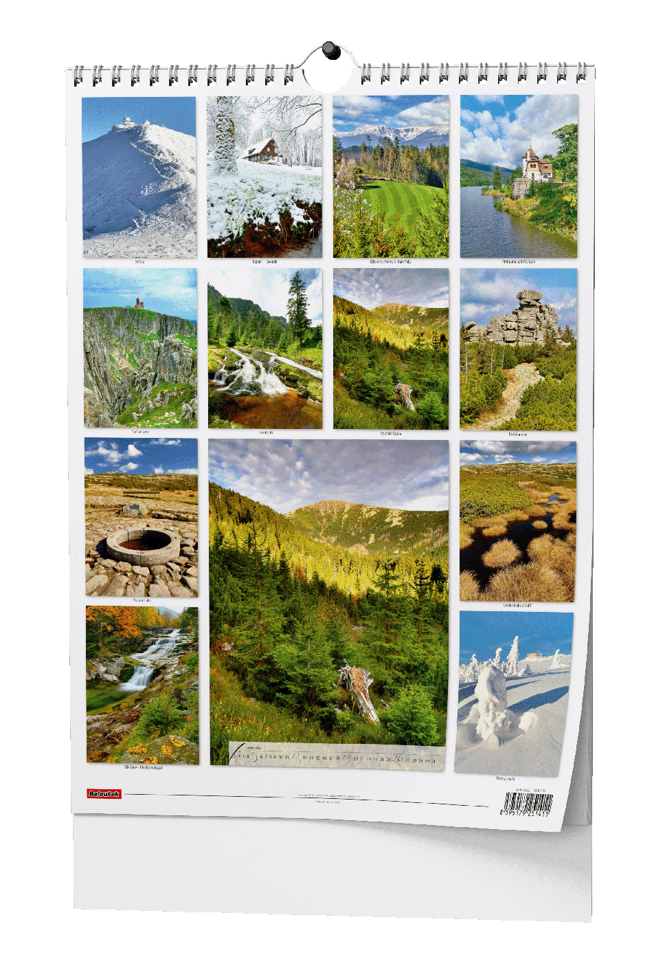 | Barva a materiál: | Papír: křída lesk, 135 g/m2 Obálka: křída lesk 150 g/m2 Karton je z kvalitní bílé lepenky Dvojitá kovová spirála "twin wire" po celé šířce kalendáře s háčkem pro zavěšení Baleno v průhledném sáčku s průhmatem. | ||||||||||||