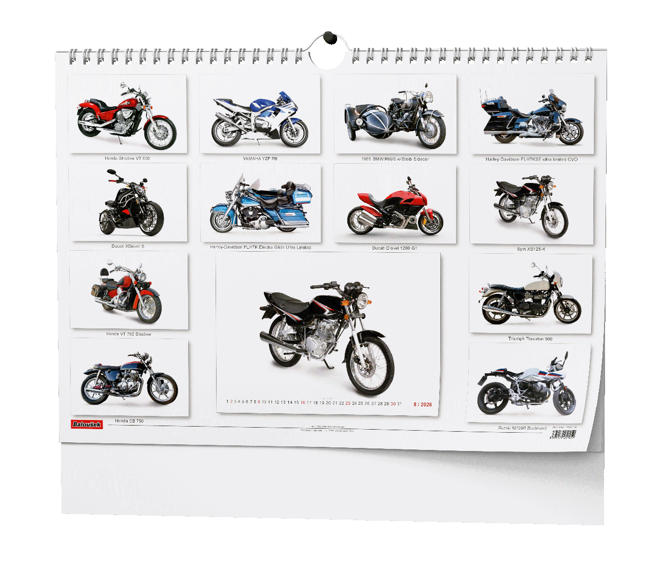 Nástěnný kalendář pro všechny milovníky rychlých motorek.