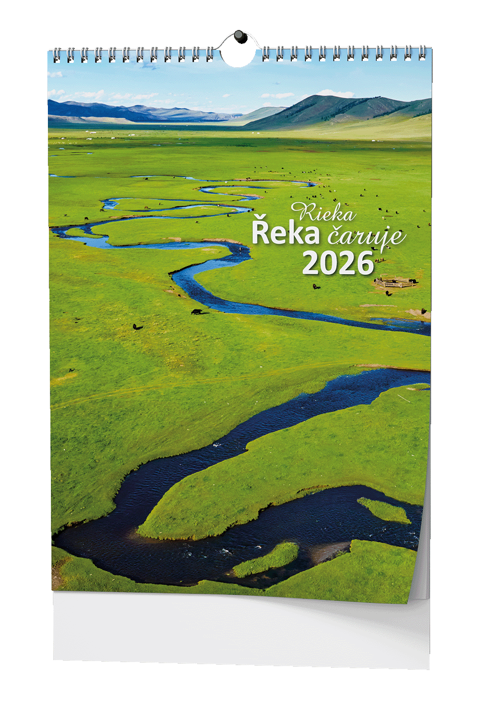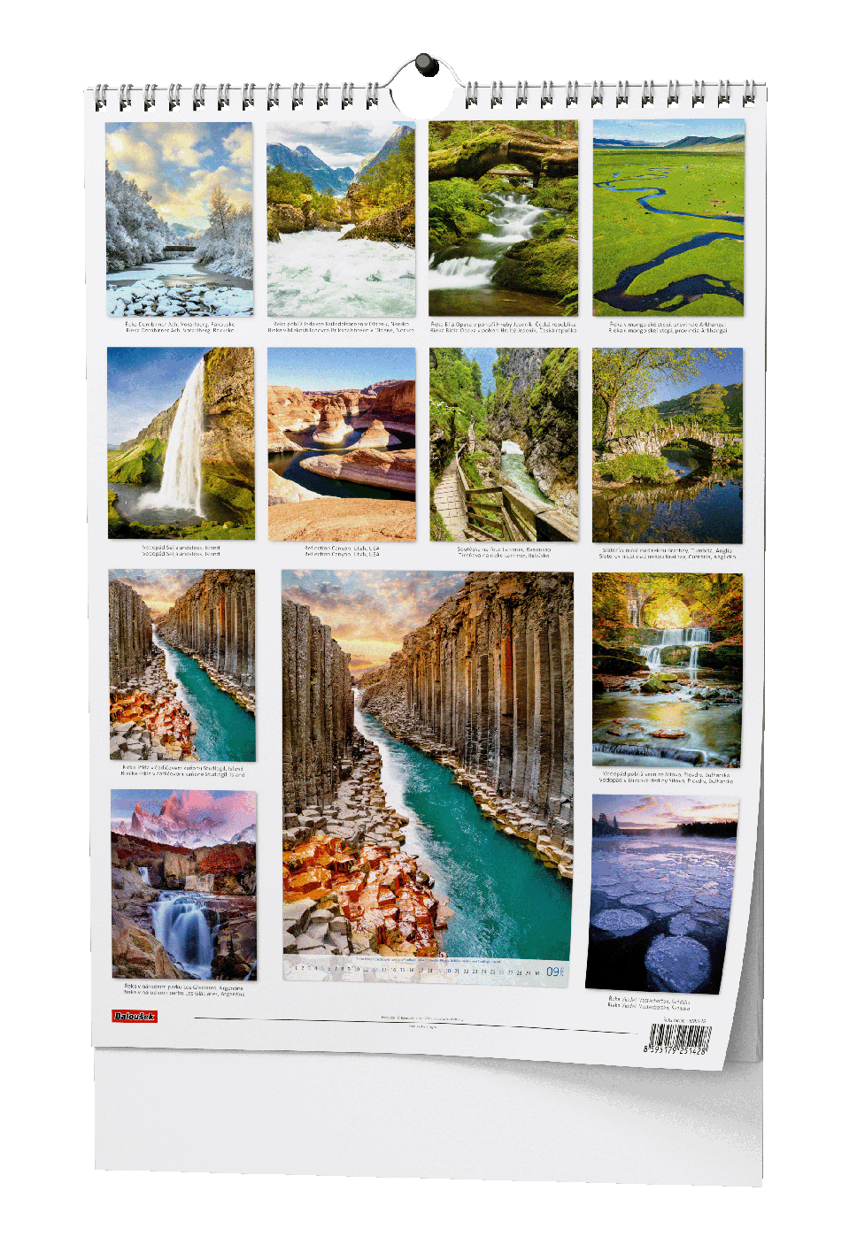 Nástěnný kalendář s obrázky působivých řek a přírodních scenérií.