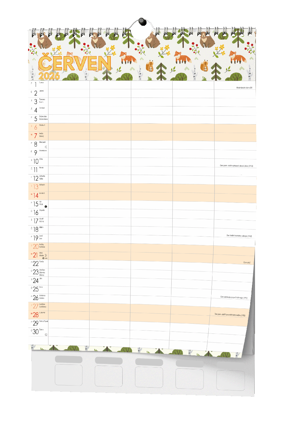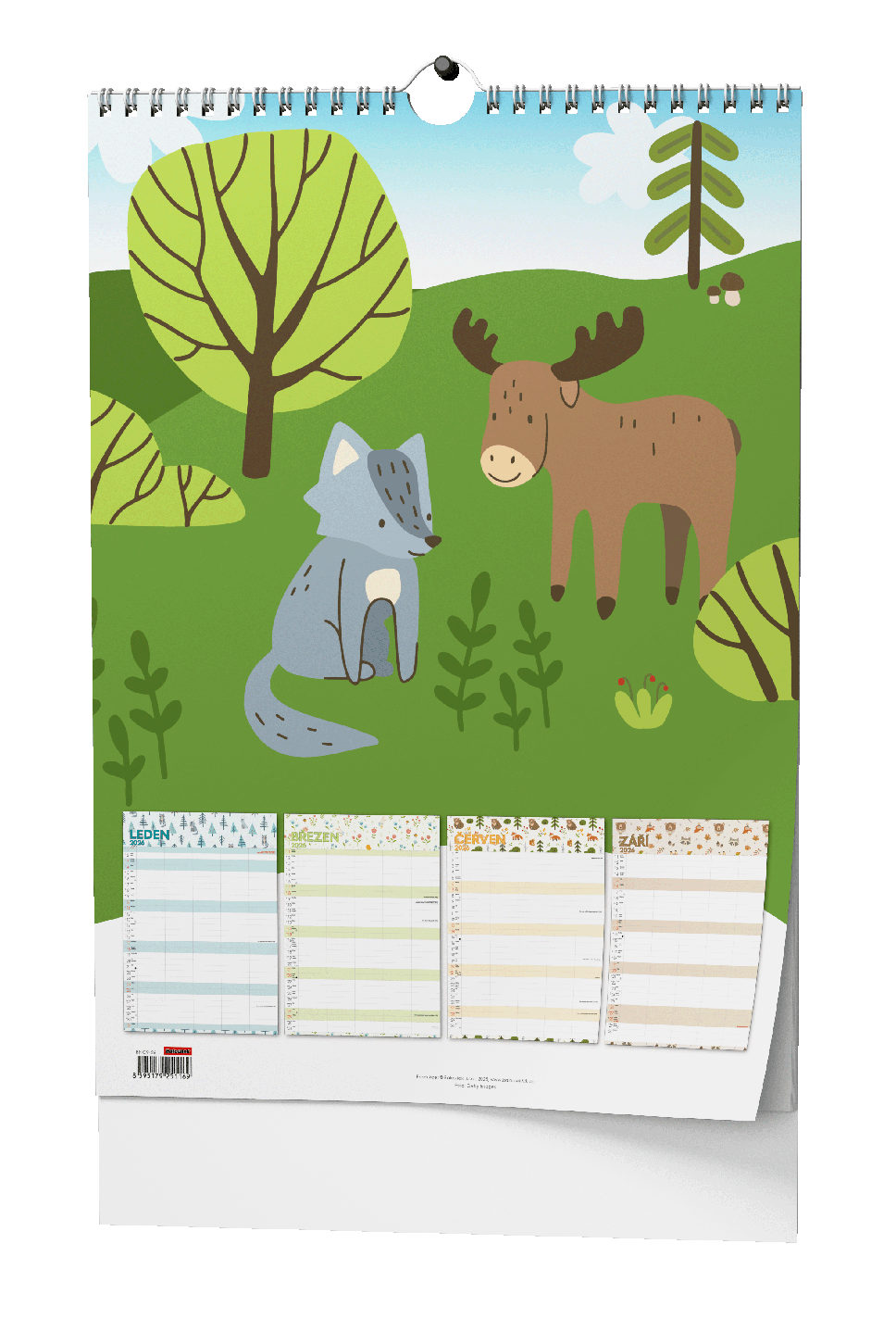 Přehledný nástěnný kalendář pro to správné rodinné plánování. Na zadním kartonu prostor na zapsání jmen jednotlivých členů rodiny (nemusíte přepisovat jména na každý měsíc) a velký prostor na poznámky.