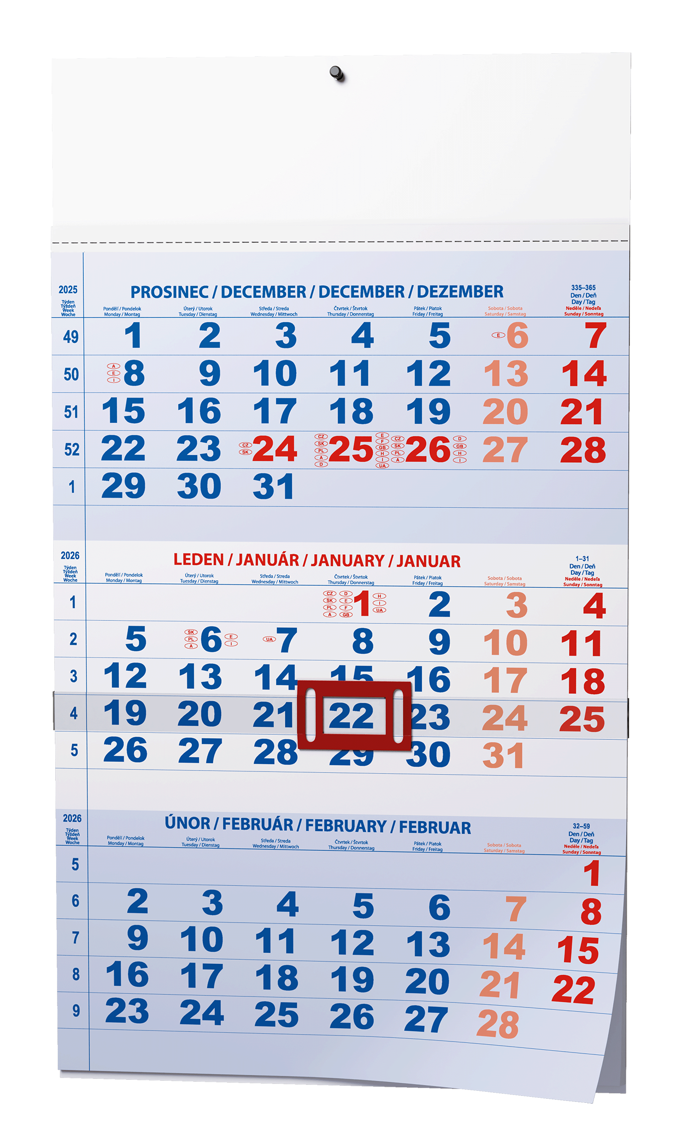 Praktický nástěnný kalendář s tříměsíčním kalendáriem a posuvným jezdcem vhodný do Vaší kanceláře.