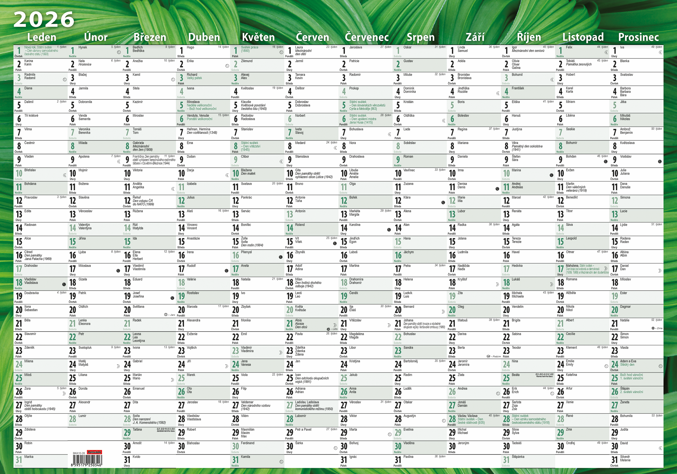 Nástěnný roční kalendář s motivy Listů je v praktické velikosti 60 cm. Mějte přehled o celém Vašem roce a efektivně plánujte.