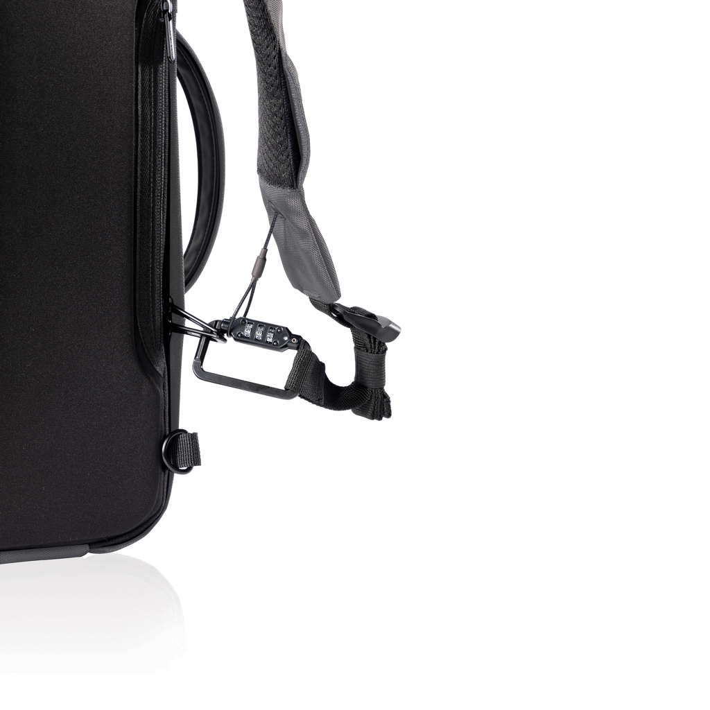 Bobby Bizz 2.0 je jedinečný stylový batoh, který je možné jednoduše proměnit v elegantní brašnu. Je navíc vybaven speciálním systémem skrytých zipů a kapes a v kombinaci s neproříznutelným materiálem jednoduše nelze vykrást. Je vyroben z vysoce kvalitního polyesteru doplněného o reflexní prvky, které zajistí vaši bezpečnost i za tmy. Vnitřní část nabízí polstrované přihrádky pro až 16" notebook, až 10" tablet a ostatní zařízení. Další množství skrytých kapes na vnější části pak usnadňuje každodenní cestování. Vestavěný kovový rám chrání vaše věci a zároveň udržuje perfektní tvar batohu. Je vybaven bezpečnostní karabinou pro uchycení batohu k pevným předmětům pro případ nepozornosti a popruhem pro připevnění ke kufru. Vyrobené z recyklovaného polyesteru včetně skenovatelné složky AWARE™ garantující obsah recyklátu. Obsah recyklované složky: 33 %.