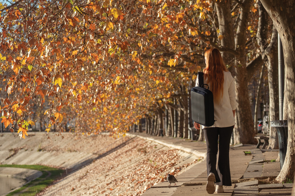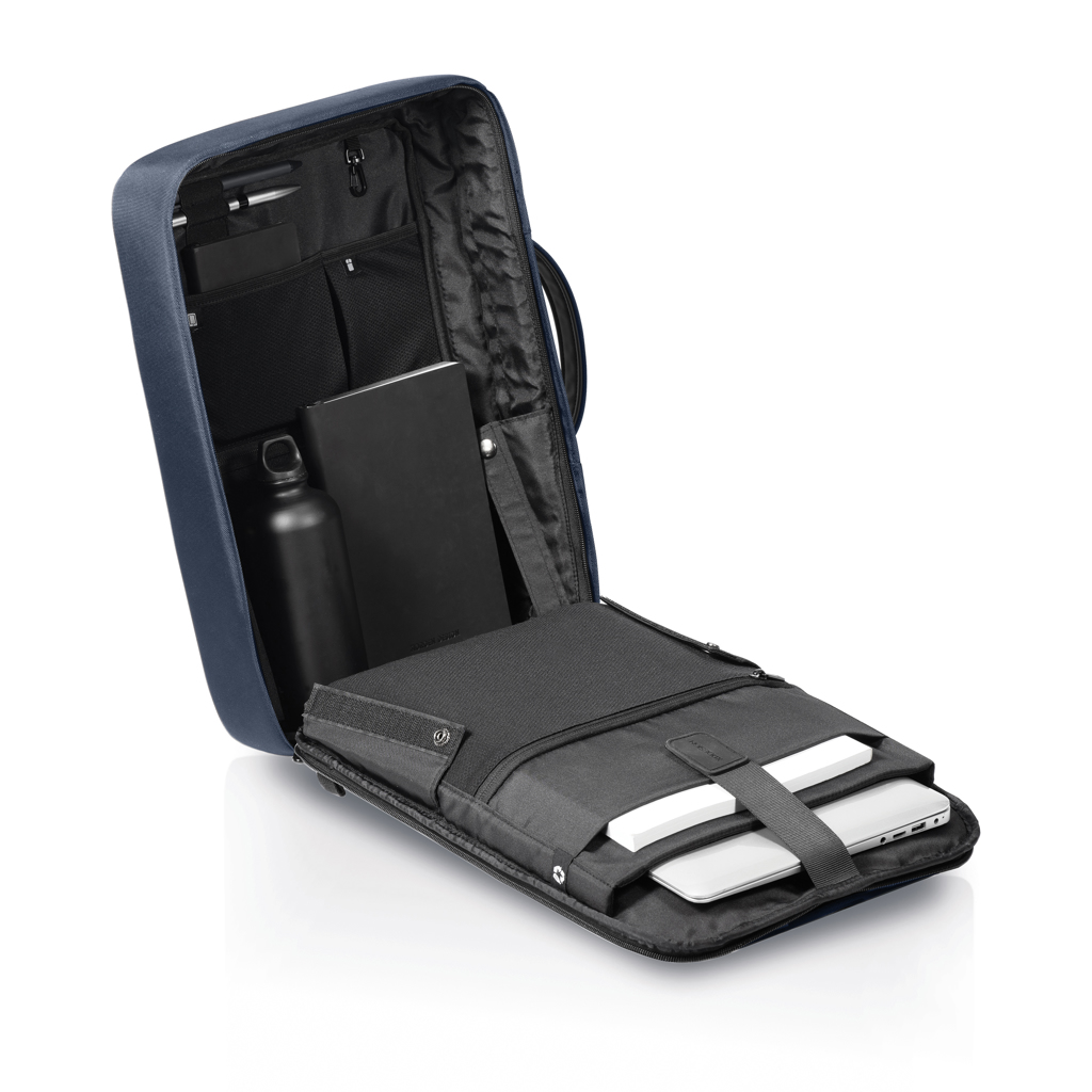 Bobby Bizz 2.0 je jedinečný stylový batoh, který je možné jednoduše proměnit v elegantní brašnu. Je navíc vybaven speciálním systémem skrytých zipů a kapes a v kombinaci s neproříznutelným materiálem jednoduše nelze vykrást. Je vyroben z vysoce kvalitního polyesteru doplněného o reflexní prvky, které zajistí vaši bezpečnost i za tmy. Vnitřní část nabízí polstrované přihrádky pro až 16" notebook, až 10" tablet a ostatní zařízení. Další množství skrytých kapes na vnější části pak usnadňuje každodenní cestování. Vestavěný kovový rám chrání vaše věci a zároveň udržuje perfektní tvar batohu. Je vybaven bezpečnostní karabinou pro uchycení batohu k pevným předmětům pro případ nepozornosti a popruhem pro připevnění ke kufru. Vyrobené z recyklovaného polyesteru včetně skenovatelné složky AWARE™ garantující obsah recyklátu. Obsah recyklované složky: 33 %.