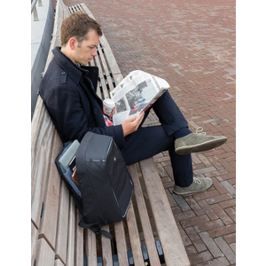 Cestovní batoh Swiss Peak s nedobytným zapínáním skrytým v zadní části zajistí bezpečnost všech uložených cenností. Vnitřní část obsahuje oddíl na 15,6" notebook a tablet. Integrovaný USB port pro snadné nabíjení telefonu z powerbanky, kterou lze uložit uvnitř batohu. Skrytá kapsa na zadní části. Bezpečností reflexní prvky, popruh na madlo kufru. Vyrobeno z recyklovaného polyesteru AWARE™. Na výrobu bylo využito 24,4 500ml PET lahví a bylo uspořeno 14 litrů vody. Z výtěžku každého prodaného kusu je navíc přispěno 2 % na podporu iniciativy Water.org. Bez PVC. Ochranný vzor®