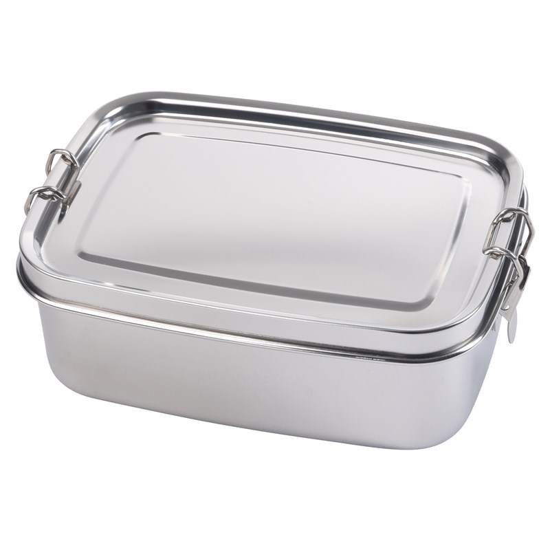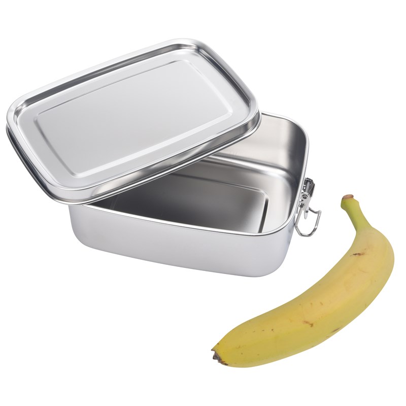 Nerezový box na svačinu: uzamykací klipy, s těsněním pro zajištění bezpečné přepravy, objem: cca 1100 ml.