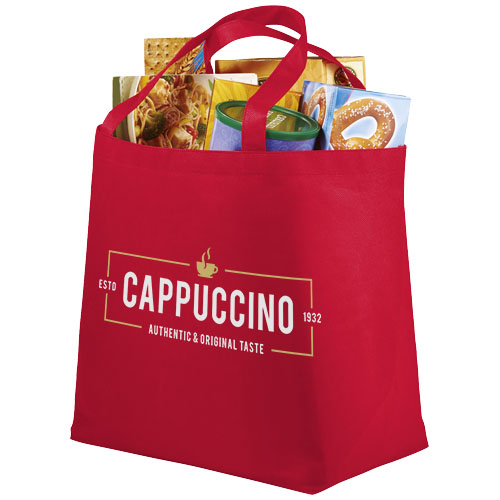 Taška Maryville tote je dobrou alternativou k jednorázovým plastovým taškám. Ponechává dostatek prostoru pro potisk loga nebo textů a díky netkané textilii je tote bag pevný pro širokou škálu použití. Ucha jsou dlouhá 18 cm, což znamená, že tote bag lze snadno nosit v ruce nebo přes rameno. Velká hlavní přihrádka navíc umožňuje snadné uložení více předmětů. Stručně řečeno: ideální taška na nákupy nebo na den strávený na pláži či v parku.