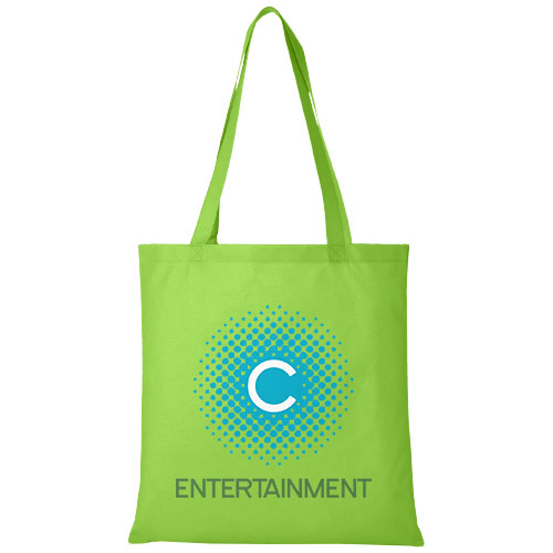Potřebujete dobrou tašku na jakýkoli veletrh nebo konferenci? Velká taška z netkané textilie Zeus je ideální volbou. Její tenký design z ní dělá elegantní model vhodný pro přenášení lehkých předmětů, jako je notebook a pero. Ucha jsou dlouhá 29 cm, a proto se snadno nosí přes rameno.